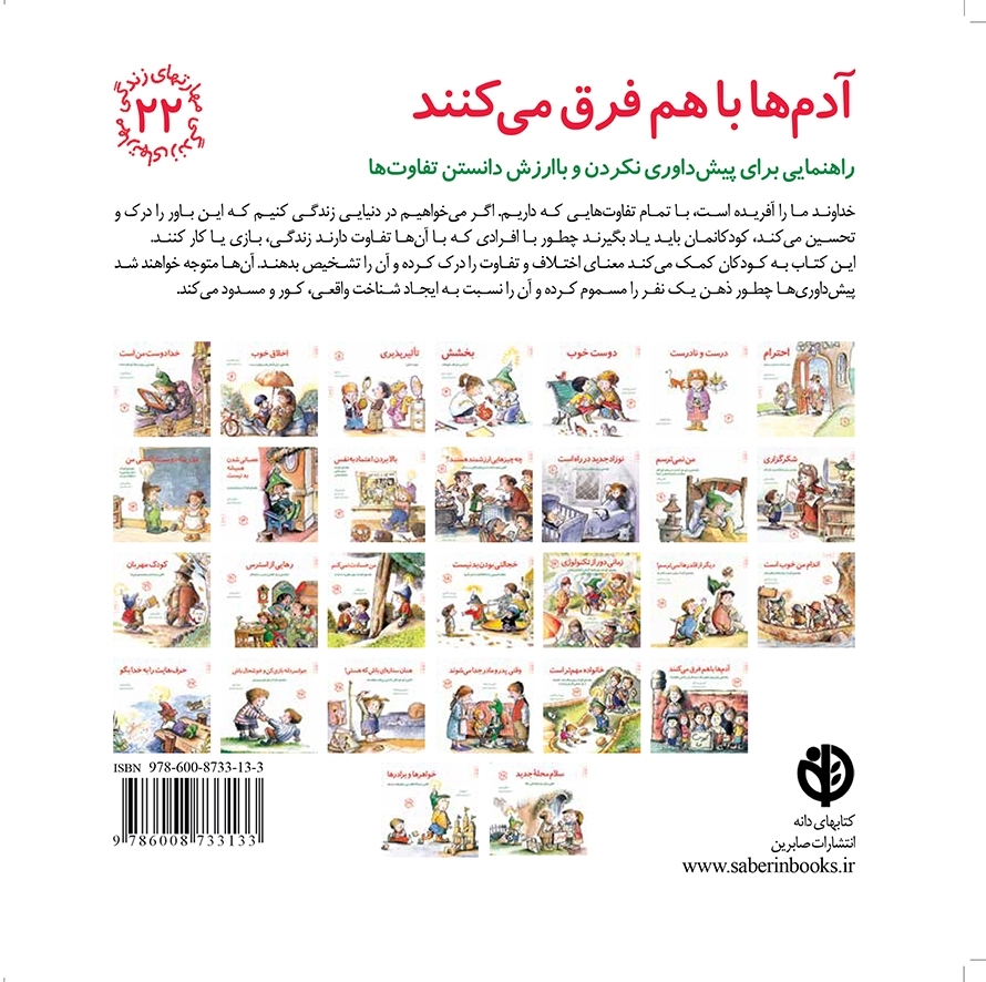 راهنمایی برای پیش داوری نکردن و با ارزش دانستن تفاوت ها خداوند ما را آفریده است، با تمام تفاوت هایی که داریم. اگر می خواهیم در دنیایی زندگی کنیم که این باورها را درک و تحسین می کند، کودکانمان باید یاد بگیرند چطور با افرادی که با آن ها تفاوت دارند زندگی؛ بازی یا کار کنند. این کتاب به کودکان کمک می کند معنای اختلاف و تفاوت را درک کرده و آن را تشخیص بدهند. آن ها متوجه خواهند شد پیش داوری ها چطور ذهن یک نفر را مسموم کرده و آن را نسبت به ایجاد شناخت واقعی؛ کور و مسدود می کند.