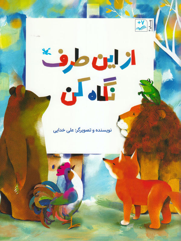 «از این طرف نگاه کن» کتاب تصویری است به نویسندگی و تصویرگری علی خدایی. شیری در جنگل یک تابلو نقاشی عجیب را می‌بیند. کم‌کم همه حیوانات دور تابلو جمع می‌شوند و هر یک تصویری را در تابلو می‌بینند که دیگری نمی‌بیند.