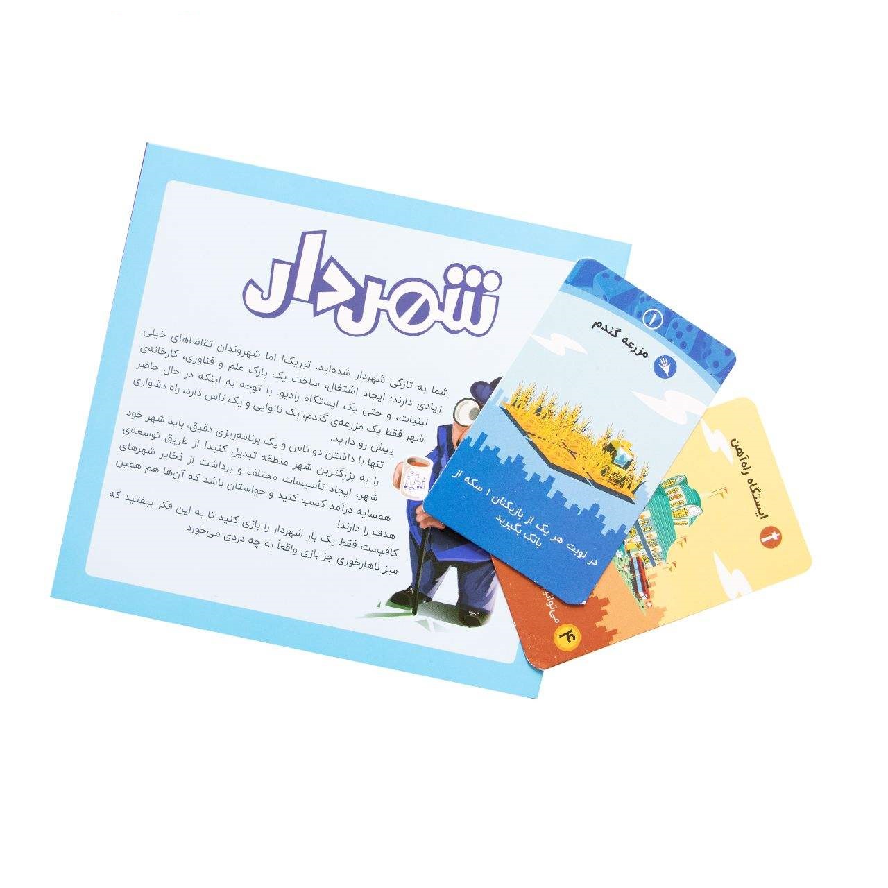 شما به تازگی شهردار شده اید.اما شهروندان تقاضاهای خیلی زیادی دارند:ایجاد اشتغال،ساخت یک پارک علم و فناوری،کارخانه لبنیات و حتی یک ایستگاه رادیو.با توجه به اینکه در حال حاضر شهر فقط یک مزرعه گندم،یک نانوایی و یک تاس دارد،راه دشواری در پیش رو دارید.تنها با داشتن دو تاس و یک برنامه ریزی دقیق باید شهر خود را به بزرگترین شهر منطقه تبدیل کنید.باید از طریق توسعه شهر،ایجاد تأسیسات مختلف و برداشتن از ذخایر شهرهای همسایه درآمد کسب کنید و حواستان باشد که آنها هم همین هدف را دارند.مدیریت منابع در کنار تفکر استراتژیک از مهارت‌های اساسی برای افزایش هوش مالی محسوب می‌شوند و بازی شهردار به روشی جالب و بدیع این مهارت‌ها را پرورش می‌دهد.شهردار یک بازی ۲ تا ۴ نفره‌ با روندی سریع و بسیار جذاب است که در آن هر بازیکن سعی می‌کند شهرش را طوری توسعه دهد که زودتر از بقیه بتواند ۴ مکان شاخص شهر خود را تکمیل کند.