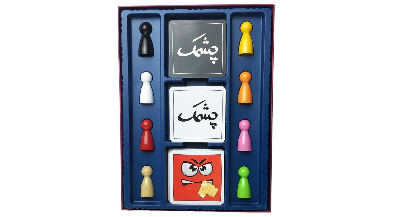چشمک یک بازی بسیار شاد و صمیمی برای جمع خانواده و دوستان است. یک بازی گروهی 4 تا 8 نفره که برای گروه سنی بالای 8 سال طراحی شده است. این بازی شامل ۱۲۰ کارت و ۸ آدمک رنگی و راهنمای بازی است. دو دسته کارت شمارهگذاری شده از ۱ تا ۳۶ وجود دارد که یک دسته بین بازیکنان تقسیم و دستهی دیگر وسط چیده میشود. هر یک از بازیکنان به نوبت آدمک خود را روی کارتی میگذارند که شمارهی آن دست خودشان نیست و دارندهی آن شماره باید طوری که دیگران متوجه نشوند با چشمک زدن یا هر روش دیگری که روی آن توافق شود، به او اطلاع دهد. به هر بازیکن ۴ کارت اتهام هم داده میشود که اگر کسی را هنگام چشمک زدن ببینند با استفاده از آن امتیاز هر دو طرف را نصیب خود سازند. بازی چشمک یخ هر میهمانی را میشکند!