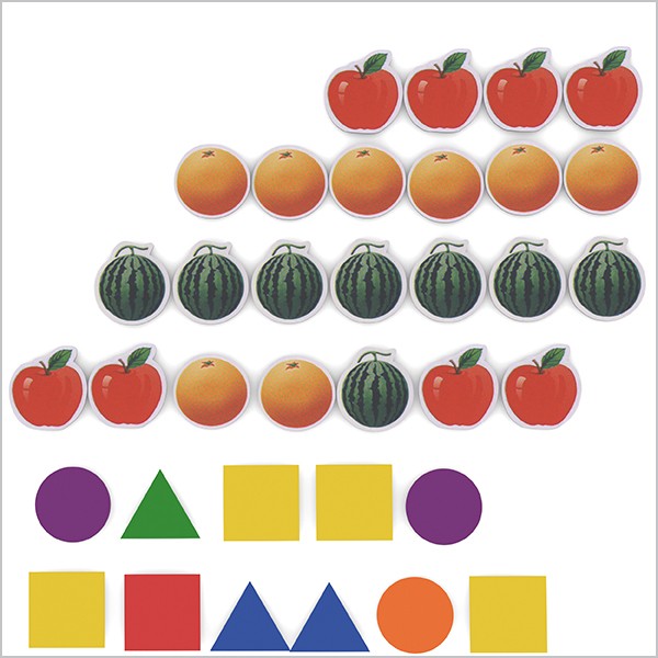 درک مفهوم الگو، الگویابی و رابطه بین الگوها از جمله مباحث آموزشی و جذاب برای دانش آموزان است که در کتاب های ریاضی بر آن تأکید فراوان شده است. الگویاب ابزار مناسبی است که موارد فوق را در قالب بازی ساده با دانش آموزان تمرین می کند. برای شروع باید با قطعات مغناطیسی ای که در اختیار دارید، الگویی ساده با یک نظم مشخص در اختیار دانش آموز بگذارید. سپس او باید سعی در کشف رابطه ی الگوی شما داشته باشد و پس از پی بردن آن، به همان شکل ادامه دهد. شما می توانید به مرور الگوها را پیچیده تر و متنوع تر نمایید و سپس از او بخواهید الگوهای جدید را تکمیل نماید.