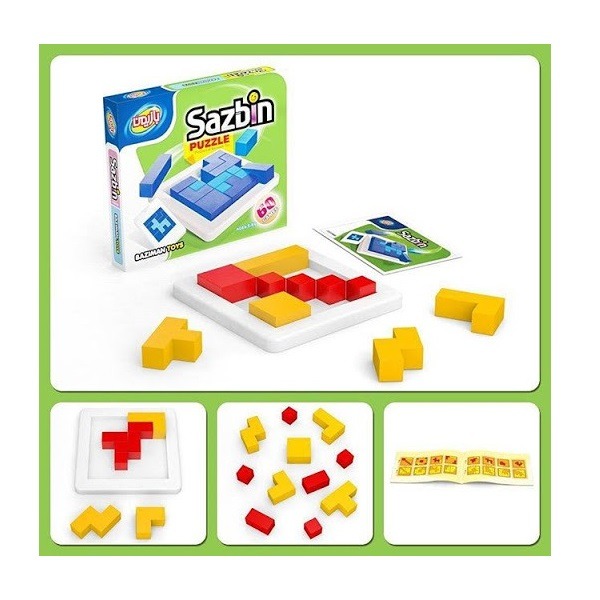 در سازبین با ۱۴ قطعه ای که در اختیار داریم یکی از ۶۰ چیدمانی که در دفترچه راهنما وجود دارد را بسازید. راه حل هریک از چیدمانها در دفترچه وجود دارد.