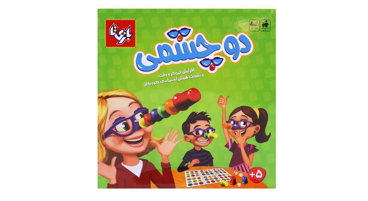 دوچشمی یک بازی گروهی 2 تا 4 نفره است که برای گروه سنی 5 سال به بالا طراحی شده است. هر بازیکن یک عینک به چشم می‌زند و ۵ لیوان با رنگ‌های مختلف را روی دماغک آن می‌گذارد. یک نفر تاس ها را می ریزد و بازیکنان باید تلاش کنند که تصویر مطابق با تاس ها را نشان دهند. اگر درست گفته باشد یکی از لیوان‌های روی عینکش را برمی‌دارد؛ اما اگر اشتباه کرده باشد باید یک لیوان به عینکش اضافه کند. این بازی دقت، تمرکز و سرعت عمل بازیکنان را افزایش می‌دهد.