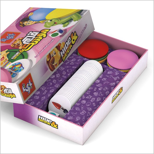 قایم موشک شامل ۳۰ پولک فومی، ۶ تشتک رنگی و یک عدد تاس است. ابتدا ۳۰ کارت تصویر را روی زمین پخش می‌کنیم؛ سپس طوری که همه‌ی بازیکنان ببینند، تشتک‌های رنگی را روی ۶ تصویر قرار می‌دهیم. هر یک از بازیکنان به نوبت تاس می‌اندازد و با توجه به رنگ تاس باید حدس بزند که زیر تشتک پلاستیکی همان رنگ چه تصویری قرار دارد. اگر درست حدس بزند آن تصویر را به عنوان امتیاز برای خود برمی‌دارد و تشتک را روی تصویر دیگری قرار می‌دهد. اگر اشتباه کند نیز تشتک را روی شکل دیگری می‌گذارد و نفر بعدی تاس می‌اندازد. هدف جمع کردن تعداد بیشتری از تصاویر است. با انجام این بازی هم حافظه خود را تقویت کنید و هم از بازی با خانواده و دوستان خود لذت ببرید