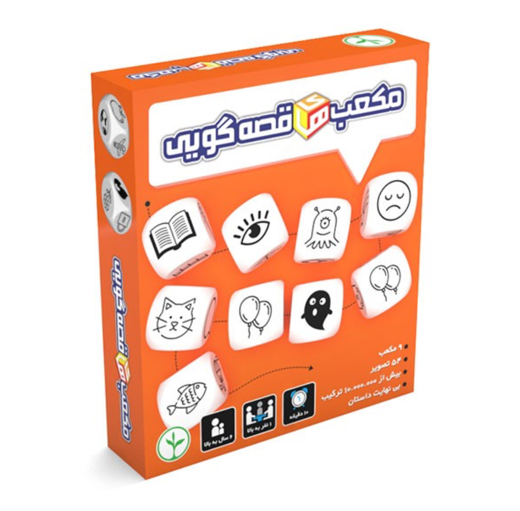 مکعبهای قصهگویی مجموعهای شامل ۹ تاس است که روی هر وجه از آنها تصویر متفاوتی نقش بسته است. با کمک این ۹ تاس و با ورد جادویی «یکی بود، یکی نبود …» دریچهای از دنیایی پر از تخیل و خلاقیت به روی شما گشوده میشود. با مکعبهای قصهگویی میتوان به روشهای بسیار گوناگونی بازی کرد و بر توانش زبانی، دایرهی واژگان، قدرت قصهگویی و بیان احساسات خود افزود. این بازی علاوه بر ایجاد فرصتی شاد و مفرح برای دورهمیهای خانوادگی، میتواند در کلاسهای انشاء و همچنین جلسات درمانی اختلالات گفتاری و عاطفی مورد استفاده قرار گیرد.