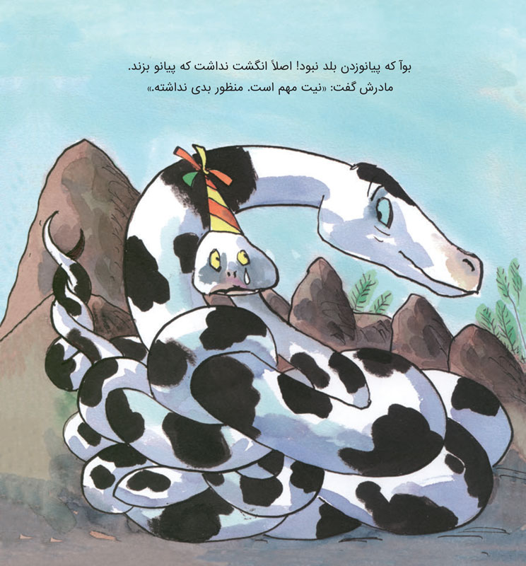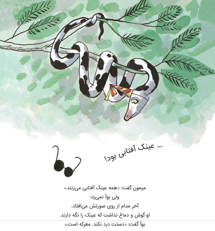 اما بوآ با دیدن هدیه ها اصلاً خوشحال نمی­ شود. چون هیچ کدام از هدیه ها به دردش نمی­ خورند. مثلاً او دست ندارد که پیانو بزند، یا گوش ندارد که عینک آفتابی بگذارد.