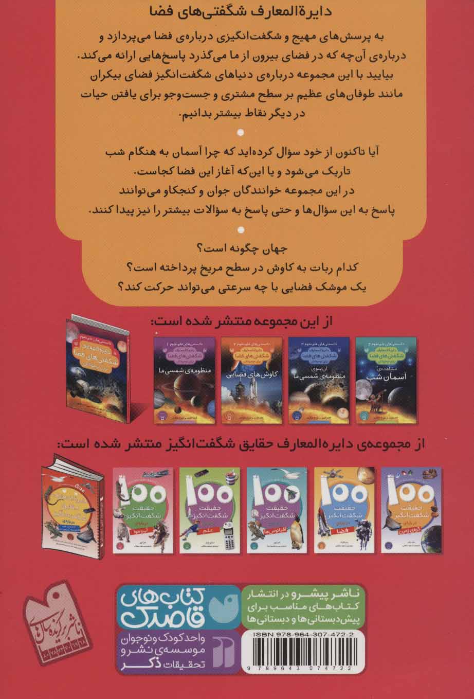 این کتاب به پرسش های شگفت انگیز و مهیج درباره فضا میپردازد و درباره آنچه در فضای بیرون از ما میگذرد پاسخ هایی میدهد . بیایید با این مجموعه درباره دنیای شگفا انگیز و بیکران مانند طوفان های عظیم در سطح مشتری و جست و جو برای یافتن حیات در نقاط دیگر بپردازیم