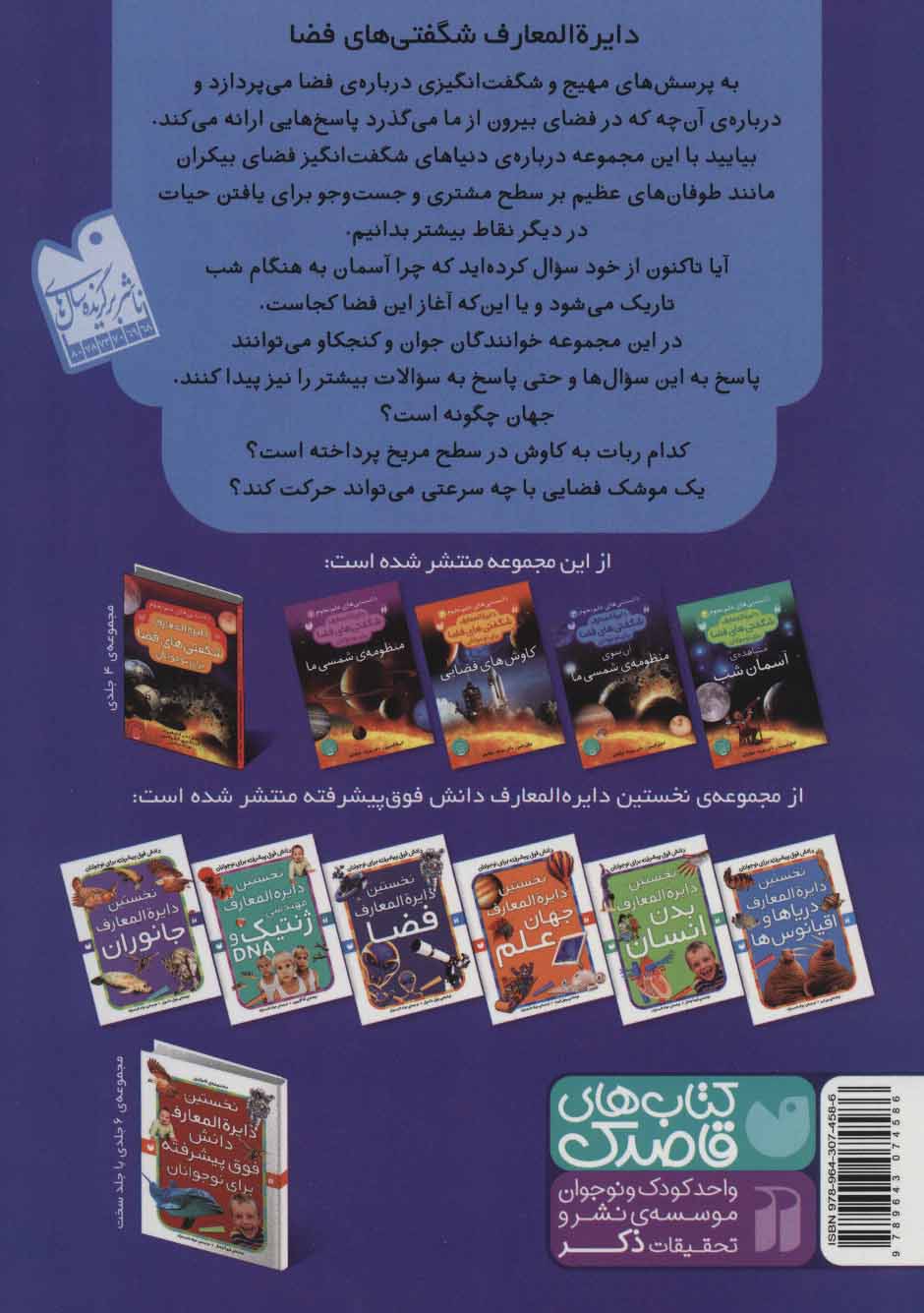 این کتاب به پرسش های شگفت انگیز و مهیج درباره فضا میپردازد و درباره آنچه در فضای بیرون از ما میگذرد پاسخ هایی میدهد . بیایید با این مجموعه درباره دنیای شگفا انگیز و بیکران مانند طوفان های عظیم در سطح مشتری و جست و جو برای یافتن حیات در نقاط دیگر بپردازیم