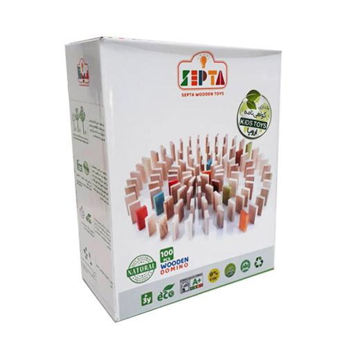 قطعات دومینو ۱۰۰ قطعه چوبی سپتا از جنس چوبهای جنگلی مرغوب و سخت ساخته شده و به همین دلیل علاوه بر داشتن استحکام و ماندگاری بالا از ایمنی کامل برای کودکان برخوردار است. وجود ۱۰ قطعهی رنگی که با رنگهای طبیعی بیخطر رنگآمیزی شدهاند، بر جذابیت بازی چیدن دومینو برای کودکان میافزاید. محصولات سپتا دوستدار طبیعت بوده و کاملاً برگشتپذیر هستند. شایان ذکر است که این محصولات از استانداردهای بینالمللی متفاوت برخوردارند و از جمله دارای مجوز نصب نشان استاندارد کیدزتویز اروپا بر روی جعبههای خود هستند.