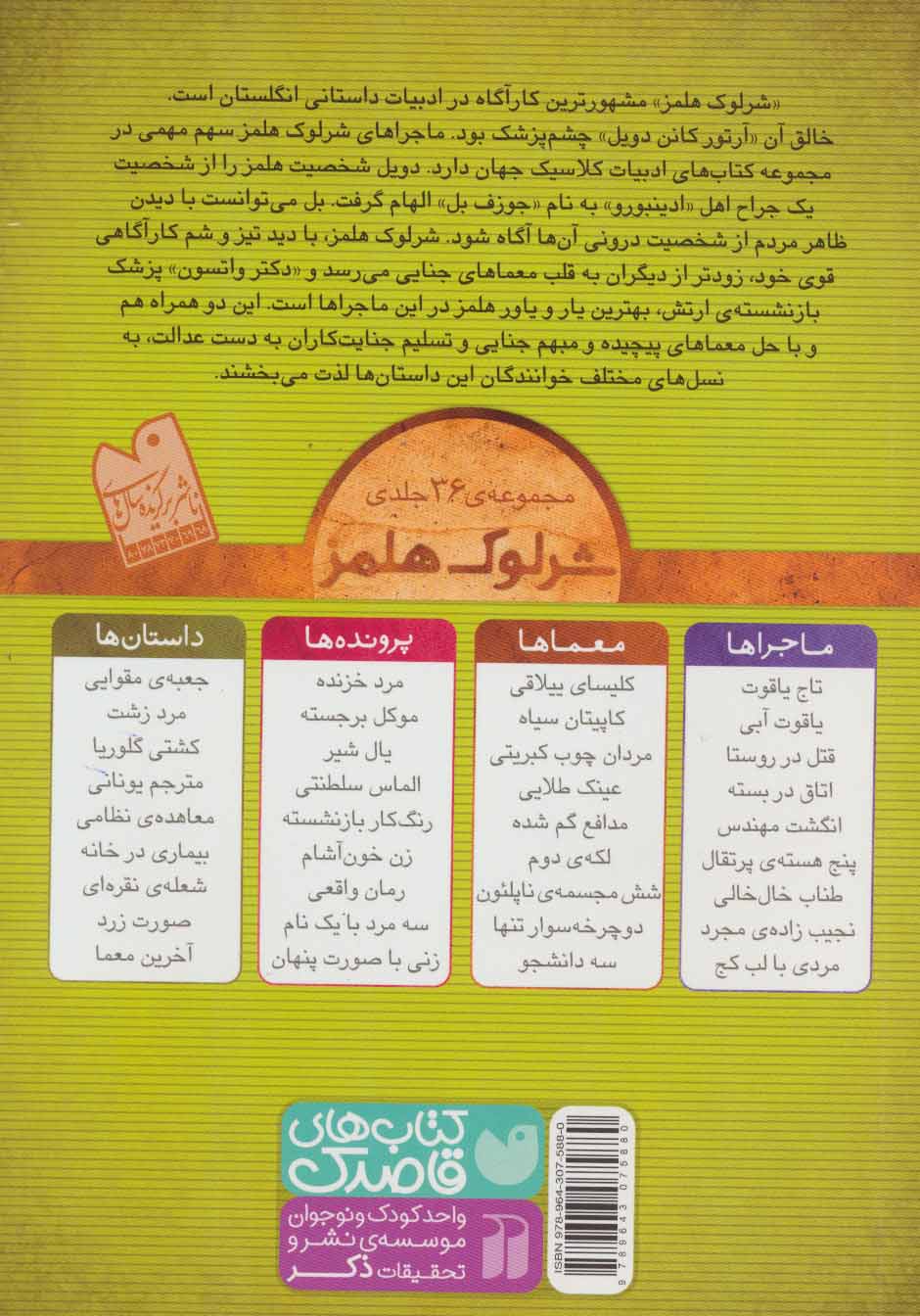شرلوک هلمز مشهورترین کارآگاه در ادبیات داستانی انگلستان است. خالق آن (آرتور کانن دویل) چشم پزشک بود ماجراهای شرلوک هلمز سهم مهمی در مجموعه کتابهای ادبیات کلاسیک جهان دارد.دویل شخصیت هلمز را از شخصیت یک جراح اهل (ادینبورو) به نام (جوزف بل) الهام گرفت. بل می توانست با دیدن ظاهر مردم از شخصیت درونی آن ها آگاه شود. شرلوک هلمز با دید تیز و شم کارآگاهی قوی خود زودتراز دیگران به قلب معماهای جنایی می رسد و (دکتر واتسون) پزشک بازنشسته ارتش بهترین یارویاور هلمز در این ماجراها است. این دو همراه هم و با حل معماهای پیچیده و مبهم جنایی و تسلیم جنایت کاران به دست عدالت به نسل های مختلف خوانندگان این داستانها لذت می بخشند.