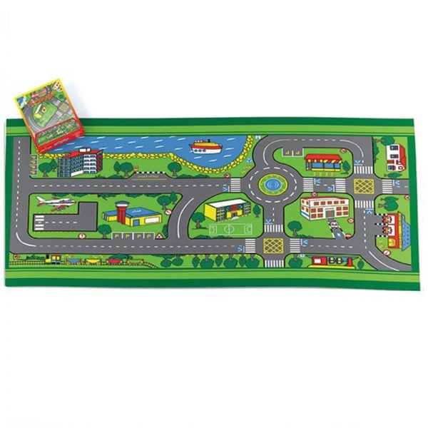 بازی شهر کوچک شامل یک زمین پارچه ای با مکان مختلف شبیه سازی شده از یک شهر است که در آن علائم راهنمایی و رانندگی هم به درستی لحاظ شده. این بازی از سری بازی های آموزشی محسوب می شود. کودک می تواند اسباب بازی ها یا ماشین های خود را در خیابان های آن حرکت دهد در هنگام بازی قوانین راهنمایی رانندگی و آداب شهروندی را نیز بیاموزد.