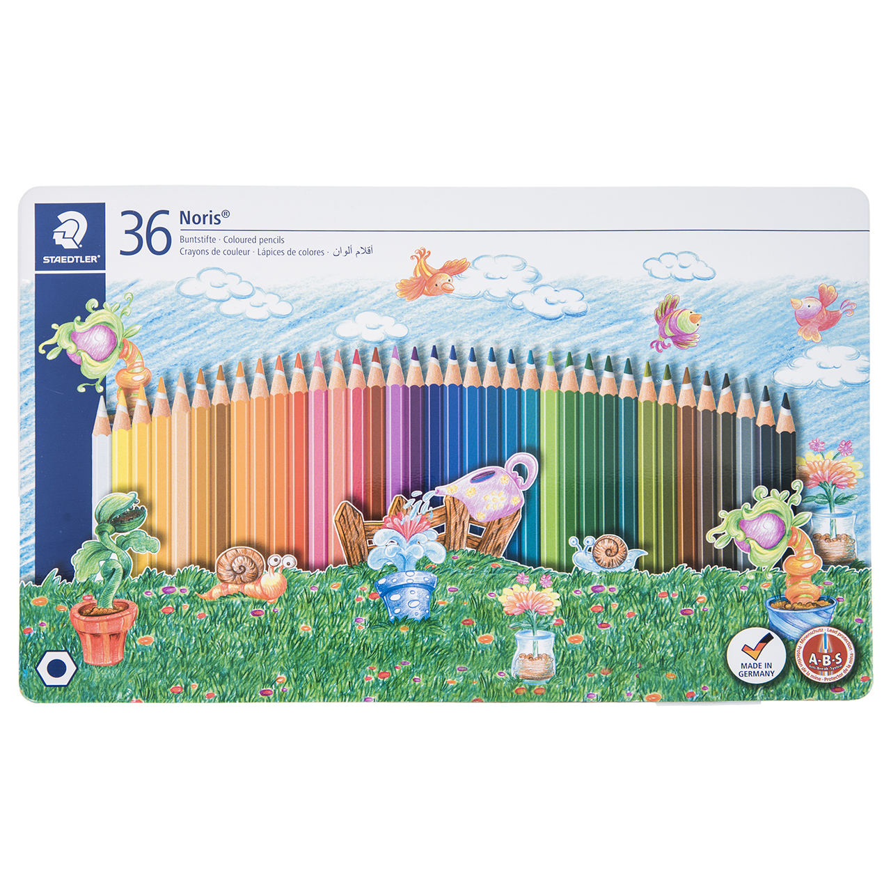 اغلب کودکان از بازیکردن با رنگها و ترکیبکردن آنها لذت میبرند. پدر و مادر با کمی دقت در نقاشی کودک میتوانند تا حد زیادی با روحیه، احساسات و علاقهمندیهای او آشنا شوند. به نظر میرسد بسیاری از کودکان هر آنچه با زبان نتوانند بیان کنند، در غالب نقاشیهای خلاقانهی خود نشان میدهند. اشکال استفادهشده در نقاشی، بزرگی و کوچکی عناصر نقاشی نسبت به یکدیگر، نحوه و نوع کاربرد رنگها، همه و همه میتوانند نشانهای از وضعیت روحی کودک در آن لحظه و مکان باشند. کودک میتواند از ابزارهای متفاوتی برای نقاشی استفاده کند و مداد رنگی یکی از پرطرفدارترین این ابزارها در میان کودکان است؛ مدادی نرم با رنگهای متنوع و حرکتی روان روی کاغذ. ترکیبکردن این رنگها و کشف رنگی تازه میتواند برای هر کودکی جذاب و هیجان انگیز باشد و راه شکوفایی خلاقیت کودک را باز کند. فراهمکردن فرصت و امکان بروز این خلاقیت برای کودک امری مهم به نظر میرسد؛ از همین رو انتخاب ابزار نقاشی بهعنوان هدیه برای کودک، نشان هوشمندی پدر و مادر است. «استدلر» (Staedtler) یکی از بزرگترین شرکتهای سازندهی نوشتافزار در جهان است که اغلب ما از کودکی با آن آشنا بودهایم. یکی از محصولات این شرکت، مداد رنگی «نوریس کالر» است. طراحی مدادهای موجود در این بستهی 24 رنگی، همانند اغلب محصولات استدلر راهراه مشکی و رنگی است. قسمت رنگی در هر مداد با رنگ مغزی هماهنگ است. این مدادها بدنهای ششضلعی و ارگونومیک دارند. این بدنه علاوهبر اینکه از آسیبرسیدن به انگشتان دست جلوگیری میکند، از لیزخوردن مداد روی میز هم جلوگیری خواهد کرد. ضمناً نوک این مدادهای رنگی بسیار محکم و در برابر فشار مقاوم است. تمامی رنگهای موجود در این بسته زنده، شفاف و پرانرژی هستند.