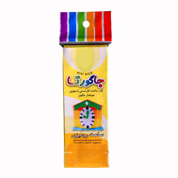 مینی پک جاگورتای ساعت رومیزی شامل 8 مقوای موجدار رنگی در ابعاد 14.8 در 5.2 سانتی متر است که جهت ساخت کاردستی و خلاقیت با استفاده از تکنیک تا کردن و رول کردن یا همان هنر جاگورتا مورد استفاده قرار میگیرد. این مقواها شامل رنگهای سبز، آبی، سفید، قرمز، مشکی، زرد، نارنجی و لیمویی میباشد که به همراه الگوی ساخت یک ساعت رومیزی ارائه شده است. این الگو مراحل ساخت ساعت رومیزی را به صورت مرحله به مرحله آموزش میدهد.