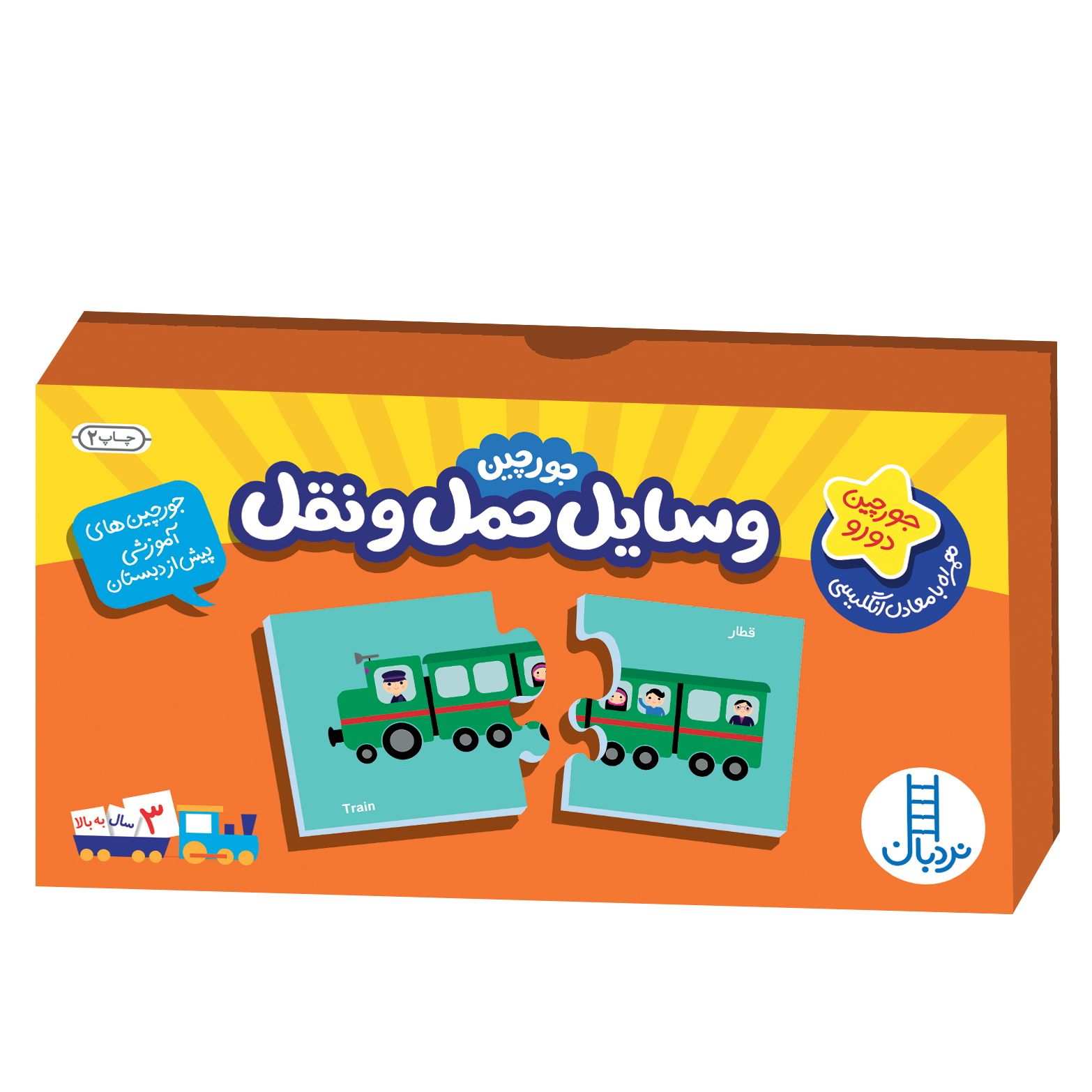 جورچین دوتکه وسایل حمل و نقل ازتعداد ۱۰ جورچین (دورو )که شامل وسایل حمل و نقل مشاغل مختلف است تشکیل شده است که داخل تصاویر نام آنها را به صورت فارسی و انگلیسی نوشته شده است. کودک بایدبه درستی جورچین ها راکنارهم بچیند. برش قطعات به گونه ای ست که هرقطعه فقط با قطعه مناسب خودچفت میشودو این کارباعث میشودکودک اشتباه خودرااصلاح کند. درهنگام بازی ازکودک بخواهیدتا اسم وسایل و مشاغل مربوط به آن رابیان کندو از او سوالاتی درباره تصاویر بپرسید و درصورت پاسخ درست اورا تشویق کنید. این بازی موجب افزایش اطلاعات عمومی و همچنین افزایش گنجینه لغات کودک میشود و درتقویت زبان آموزی موثراست. بازی بااین مجموعه دایره لغات وقوه تخیل کودکان را ضمن سرگرم نمودن آنها افزایش میدهد. کودکان معمولا علاقه بسیاری به کشف دنیای اطرافشان دارند.
