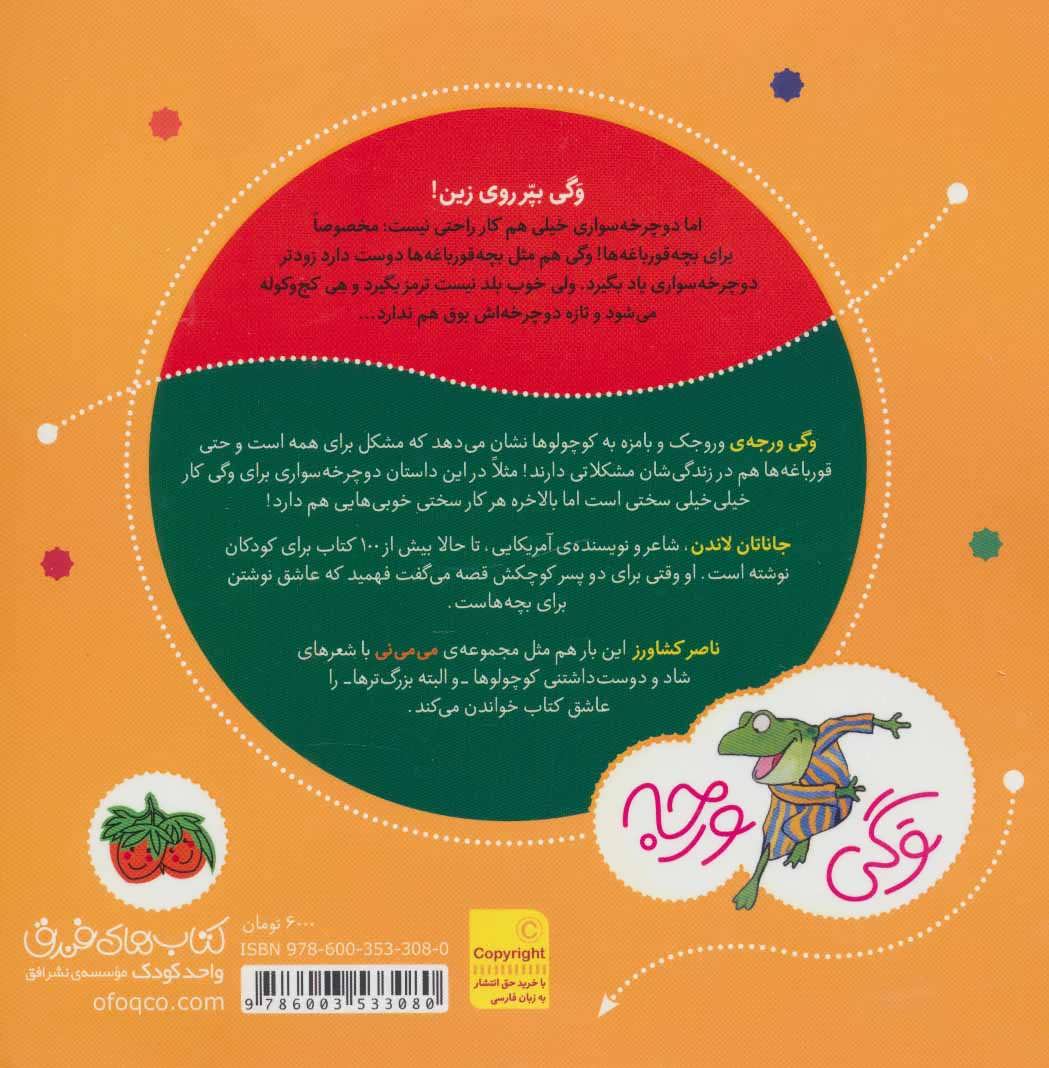 اما دوچرخهسواری خیلی هم کار راحتی نیست؛ مخصوصاً برای بچهقورباغهها! وگی هم مثل بچهقورباغهها دوست دارد زودتر دوچرخهسواری یاد بگیرد. ولی خوب بلد نیست ترمز بگیرد و هِی کجوکوله میشود و تازه دوچرخهاش بوق هم ندارد…