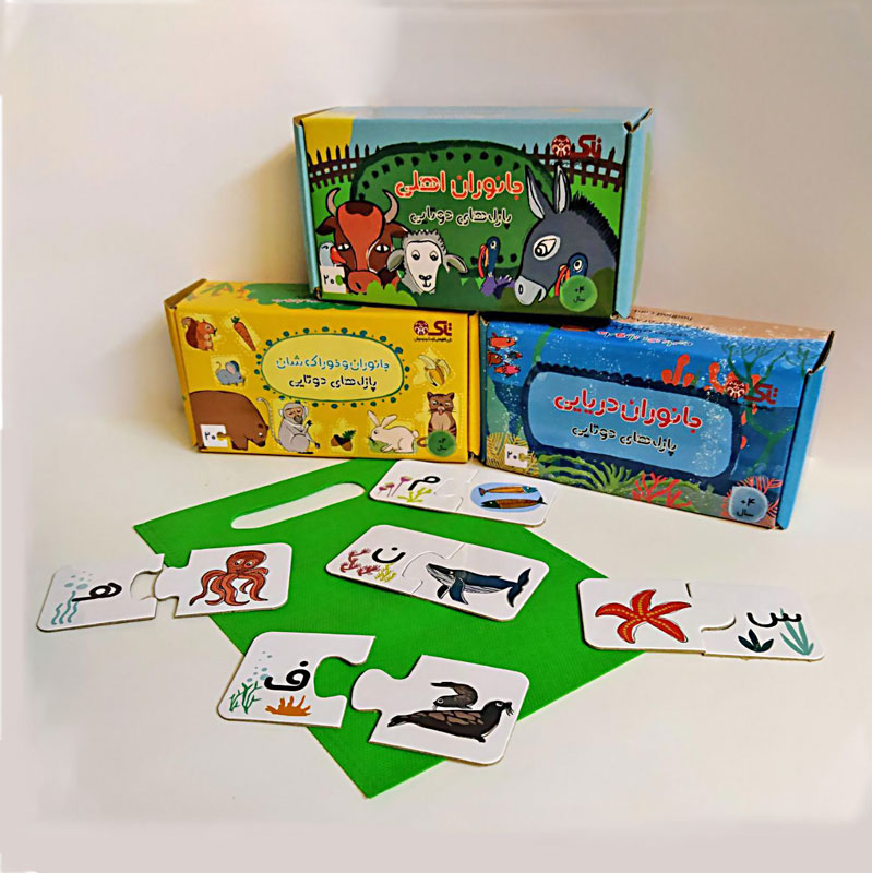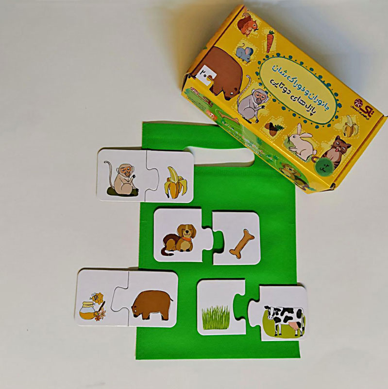 این بسته شامل ۲۰ قطعه پازل است که به صورت دوتایی باهم جور می‌شوند و به کودک در آشنایی با حیوانات و خوراک‌شان کمک می‌کند.