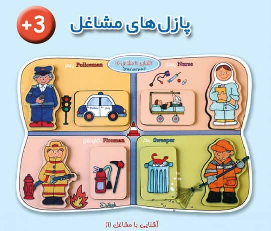 بهتر است این مشاغل را که کودک در هر قطعه پازل مخصوصش را قرار می دهد به صورت شفاهی هم توضیح مختصری در موردش داده شود.