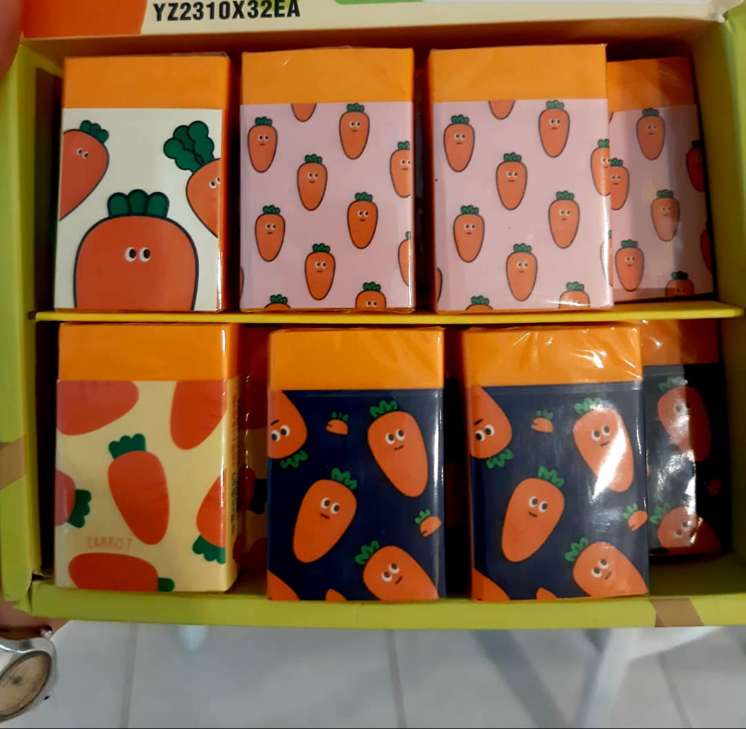 این پاک کن های خوشگل علاوه بر اینکه طرح جلدشون هویجیه طرح یه هویج رو روی سطح مقطع خودشون دارن .کیفیتشون خیلی خوبه و با طرح های دوست داشتنیش باعث ایجاد انگیره بیشتر توی بچه ها برای نقاشی کشیدنشون و انجام تکالیف مدرسشون میشه