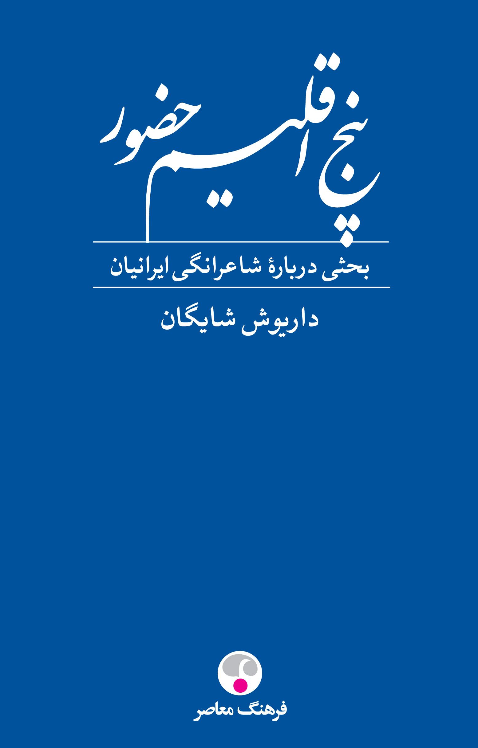کتاب «پنج اقلیم حضور» نوشتهی «داریوش شایگان»، نویسنده، مترجم و اندیشمند معاصر ایرانی است. این کتاب دربارهی رابطهی ایرانیان با پنج شاعر بزرگ زبان و ادب فارسی یعنی فردوسی، مولوی، خیام، حافظ و سعدی نوشته شده است. در این کتاب نویسنده به ویژگی شاعرانگی ایرانیان می پردازد و از این زاویه، رابطهی عمیقی را که بین ایرانیان و پنج شاعر بزرگ ایرانی برقرار است، بررسی میکند. شایگان، در بخشی از پیشگفتار کتاب دربارهی خصلت شاعرانگی ایرانیان می گوید: «از همان زمان کودکی حیرت میکردم از اینکه اطرافیانم انقدر شعر از بر دارند و هریک همچون گنجینهای از اشعارند. بعدها طی زندگی در کشورهای دیگر به این نکته پی بردم که بهندرت میتوان فردی فرانسوی یا انگلیسی را یافت که اشعار راسین و ویکتور هوگو و بودلر یا شکسپیر و میلتون و بایرون را از بر بخواند. بهراستی کدام خصیصه، ایرانیان را در این مورد از سایر اقوام دنیا متمایز میکند؟ به نظر من پیوندی از این دست مولود قریحه شاعرانهی ایرانی است که درجهان بی همتاست.» شایگان در پیشگفتار کتاب نقل قولی از همسر نیکوس کازانتزاکیس نویسندهی یونانی آورده که پس از دیدار مقبره سعدی و حافظ به او گفته: «من در هیچ جای دنیا ندیدهام که مزار یک شاعر زیارتگاه مردم باشد.» مطالب این کتاب نخستین بار در سال 1983 به صورت مقاله در مجله «فرانسوی اتود فیلوزوفیک» منتشر شده است. شایگان در برگردان این مقالات از زبان فرانسه به فارسی بخشهایی را تکمیل و نواقص آن را برطرف کرده است. داریوش شایگان این کتاب را درپنج بخش به همراه پیشگفتار نوشته است که بخش نخست دربارهی فردوسی با عنوان «زمان حماسی که فراتر از مرگ میرود»، بخش دوم درباره خیام با عنوان «لحظههای برق آسای حضور»، بخش سوم درباه مولوی با عنوان «زمان کندن از خود با جهشهای وجد و سماع»، بخش چهارم درباهی سعدی با عنوان«زمان اجتماعی اهل ادب» و بخش پنجم دربارهی حافظ با عنوان «زمان شکفتگی بین ازل و ابد» است. این کتاب را انتشارات «فرهنگ معاصر» به علاقمندان فرهنگ و ادب فارسی تقدیم کرده است.