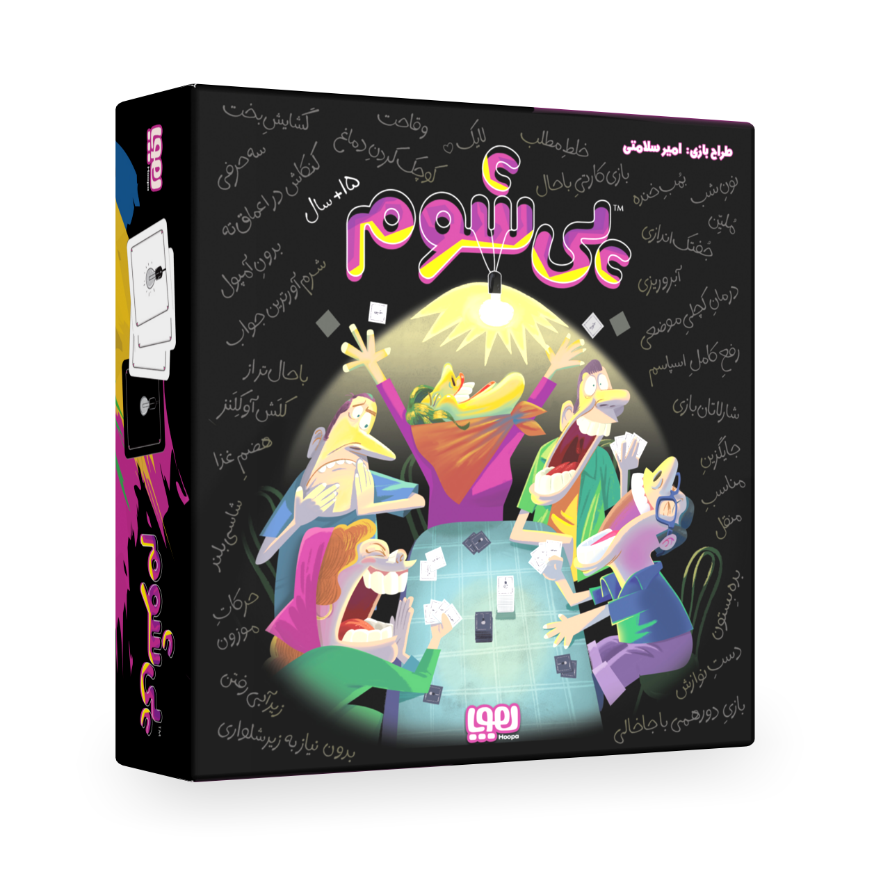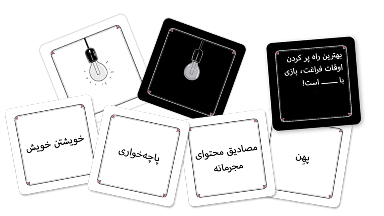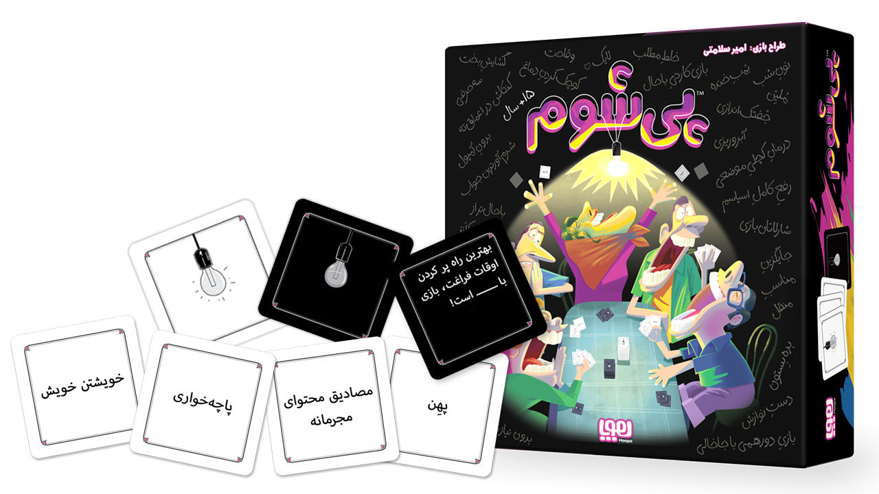 اگر از اینکه در دورهمیها همه حواسشان به ــــــــــ و ــــــــــ است دلخور هستید و دلتان میخواهد جمع پر از معاشرت و خنده و ــــــــــ بشود، پس پیشوم برای شماست! یک بازیِ ــــــــــ برای کسانی که جمعشان همیشه پر از اتفاقات تازه است! در این بازی کارتی به کمک کارتهای سفید، باحالترین و خندهدارترین و شاید هم ــــــــــ ترین جوابها را به جایخالی موجود در سوالهای بازی بدهید!