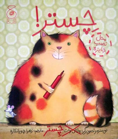 گربه بازیگوش کتاب «چستر!» با ماژیکاش از روی جلد به خواننده لبخند میزند و شیطنت او را در پایین جلد میبینیم که نام نویسنده و تصویرگر کتاب را خط زده و نام خودش را نوشته.